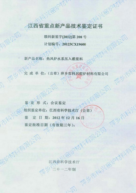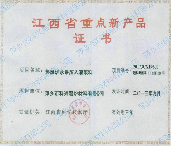江西省重點(diǎn)新產(chǎn)品鑒定證書(shū)