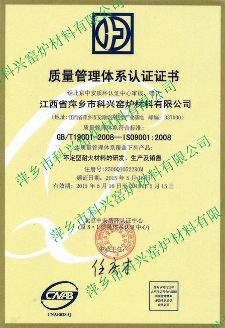 質(zhì)量認(rèn)證證書(shū)2015